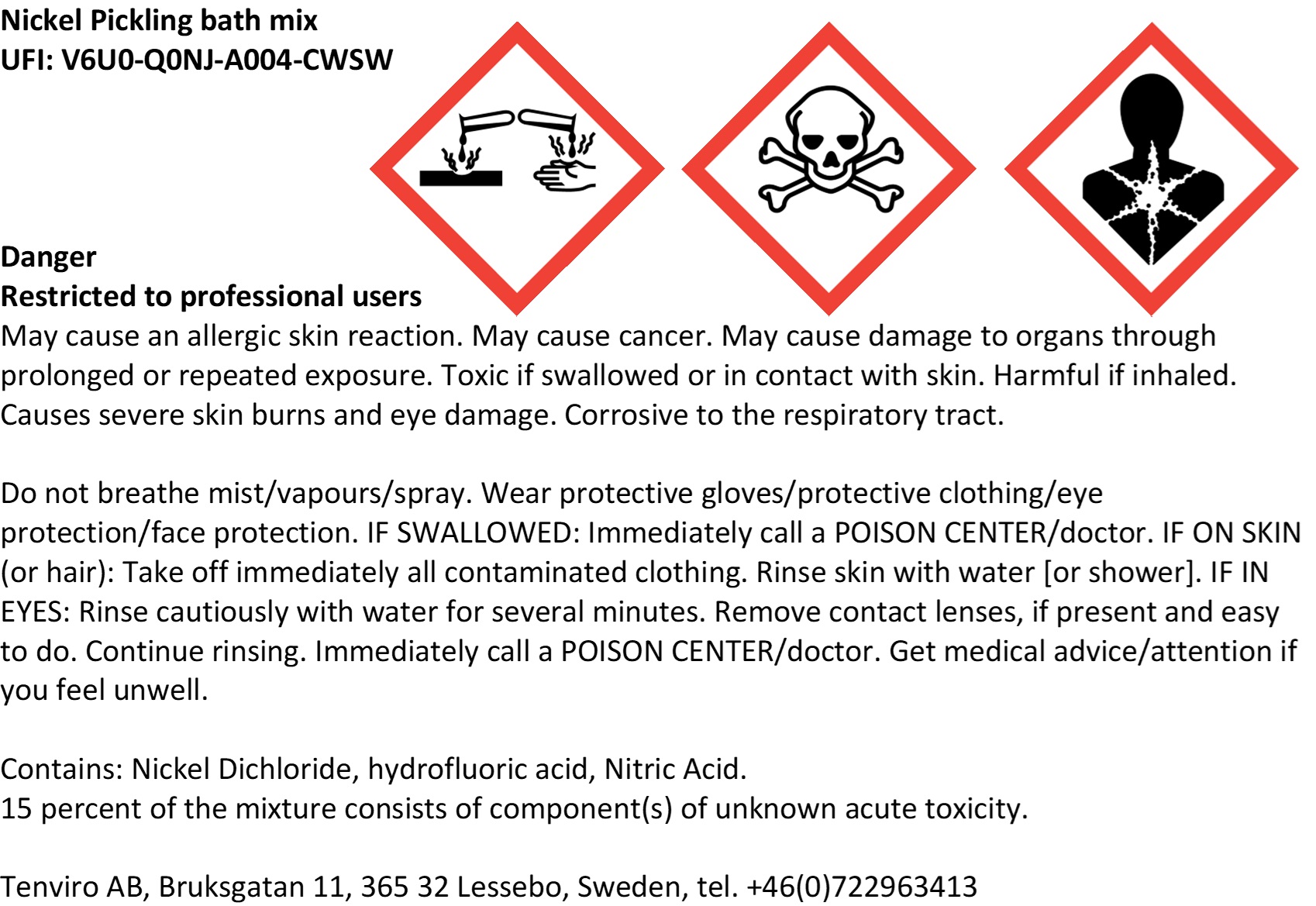 - Skapar en etikett med signalord, H & P-angivelser, piktogram och relevanta ämnen